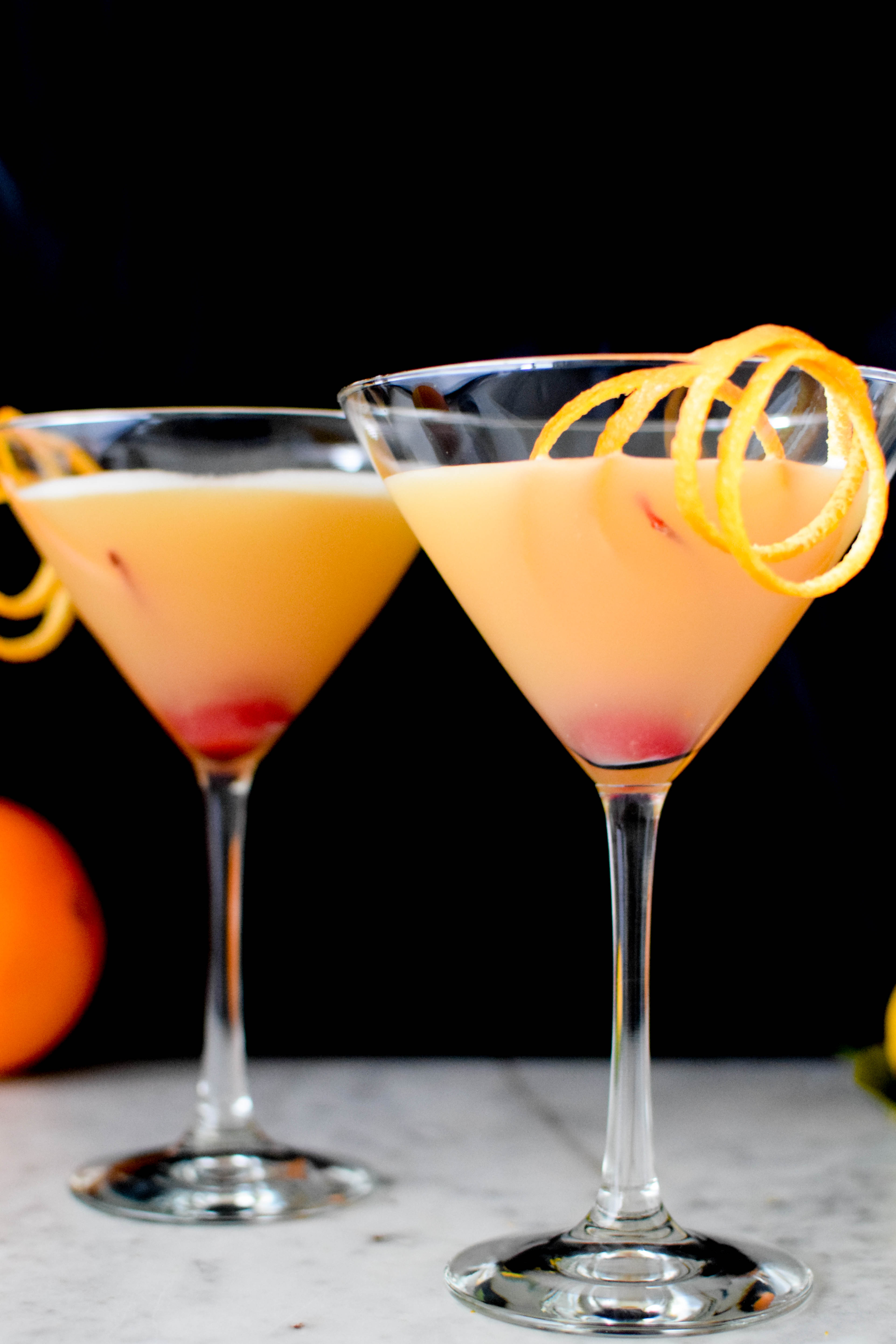 - Garnish with a Maraschino cherry and orange or lemon zest or a half orange orange slice.