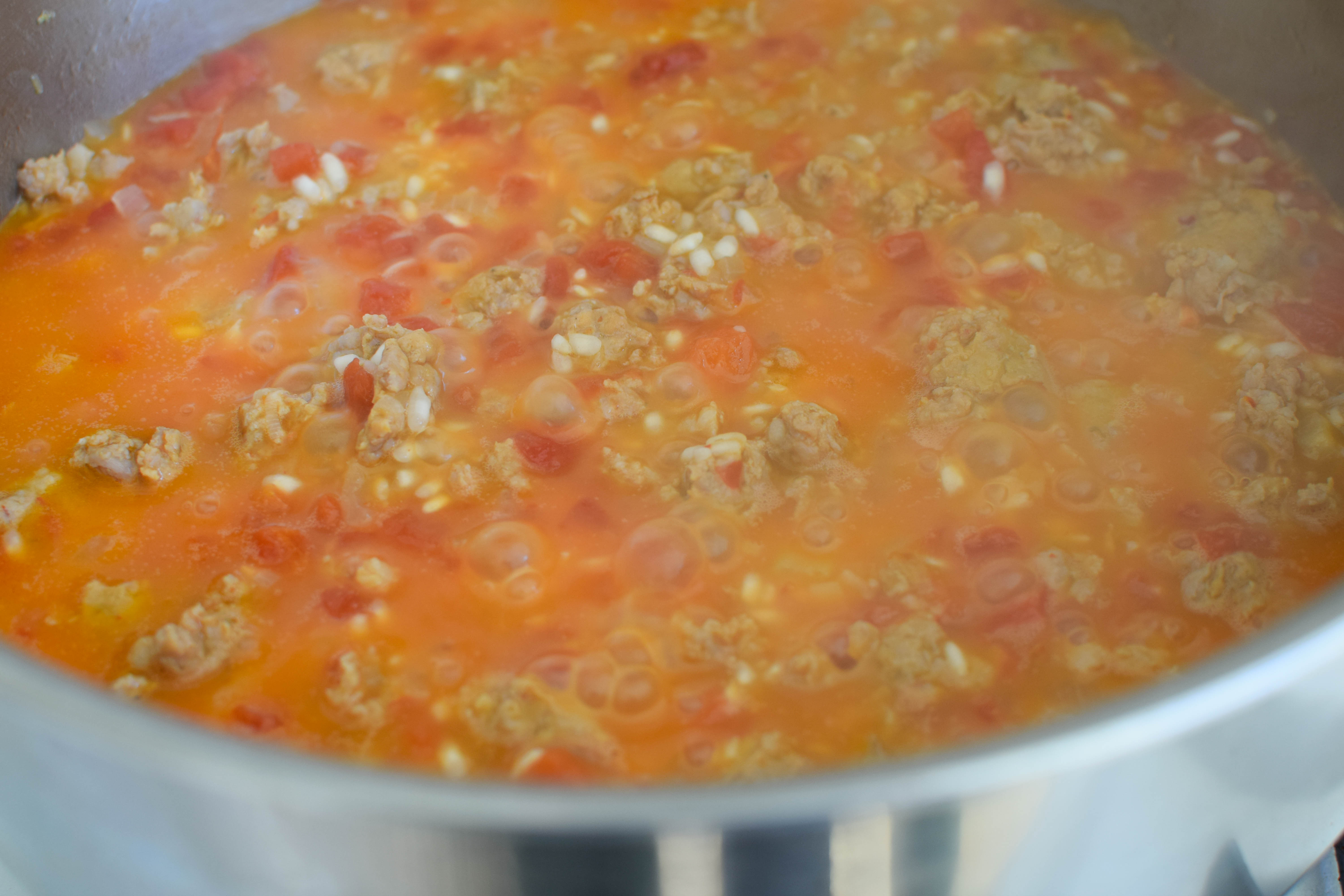 - Add about 2 cups of tomato mixture. Simmer over medium-high heat, stirring occassionally, until completely absorbed, about 5 minutes. Continue adding about 1 cup of tomato mixture at a time. Wait for the liquid to be absorbed before adding the next cup. Cook until rice is creamy and tender, about 25 minutes.