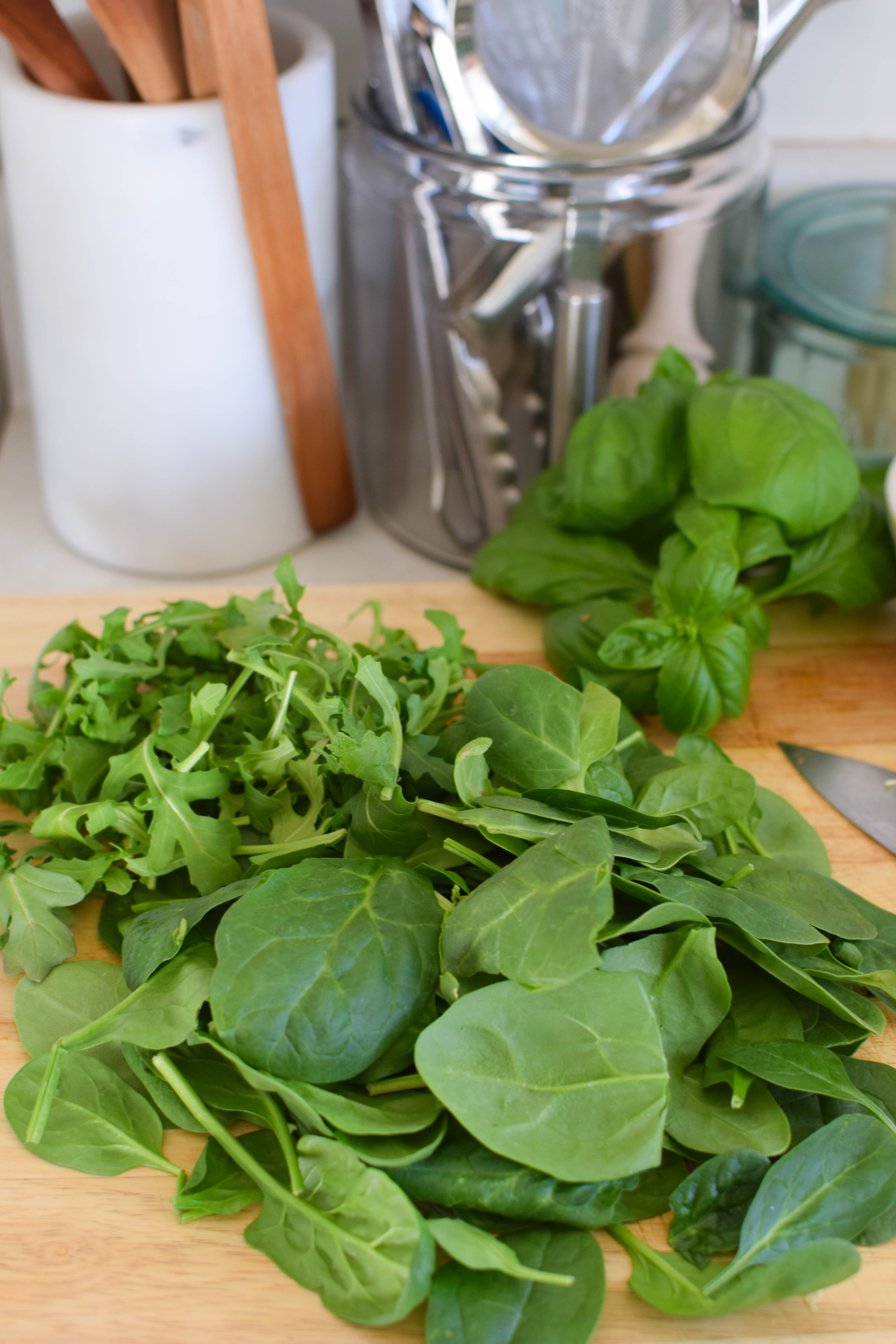 - Remove from heat. Stir in grated Parmesan and butter. Add spinach and/or arugula. Season with salt and pepper.