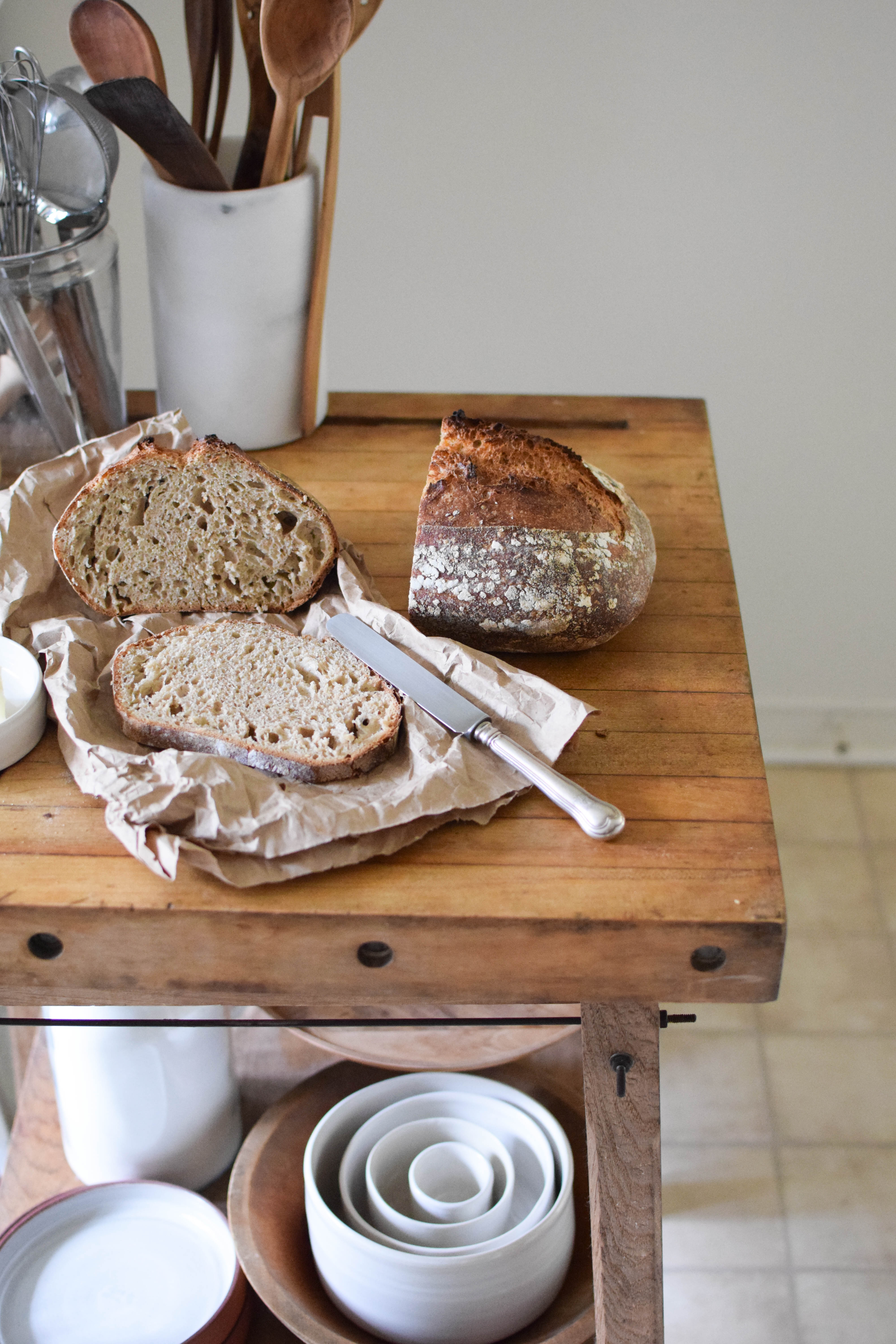 Although I am a sourdough-girl at heart, I decided to start out with a simple rustic bread leavened with active dry yeast, so you don’t have to spend three days training a sourdough culture.